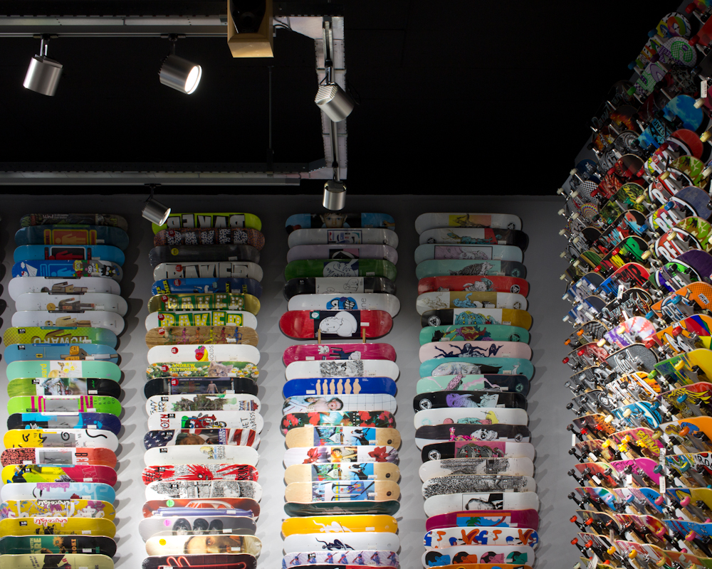 A new BASIC Linear Ledline in aluminium of 4 meter with 11000 LM lightoutput, for general lighting was introduced in the Skatestore in Rotterdam. Together with 60pcs Silverline Ledrailspots the lightplan was completed. This gives the Skatestore a powerfull, cool (4000K) energysaving NEW LOOK.